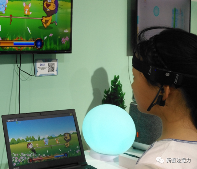 大脑360课程的学员在进行CUBand脑电反馈注意力训练