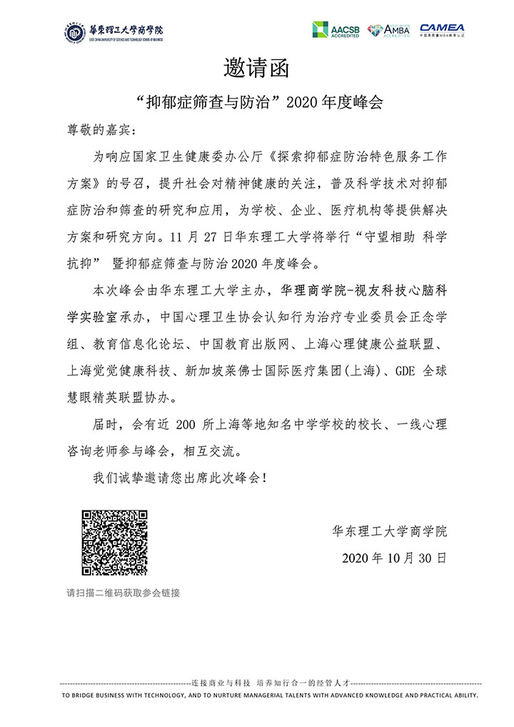 “守望相助 科学抗抑” 暨抑郁症筛查与防治2020年度峰会诚邀您的参与!