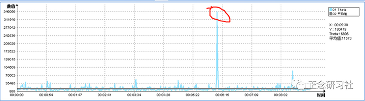 在视友科技佰意通集训版记录到这位学生的alpha,beta,theta,delta,gama五种波形中,我们发现该生的theta波有明显的且相对宽幅的三次次脉冲,如下图所示。这个脑波图恰好和该生描述的有两次创意的想法相符。而科学研究也指出theta波与我们的直觉、创造力密切相关。